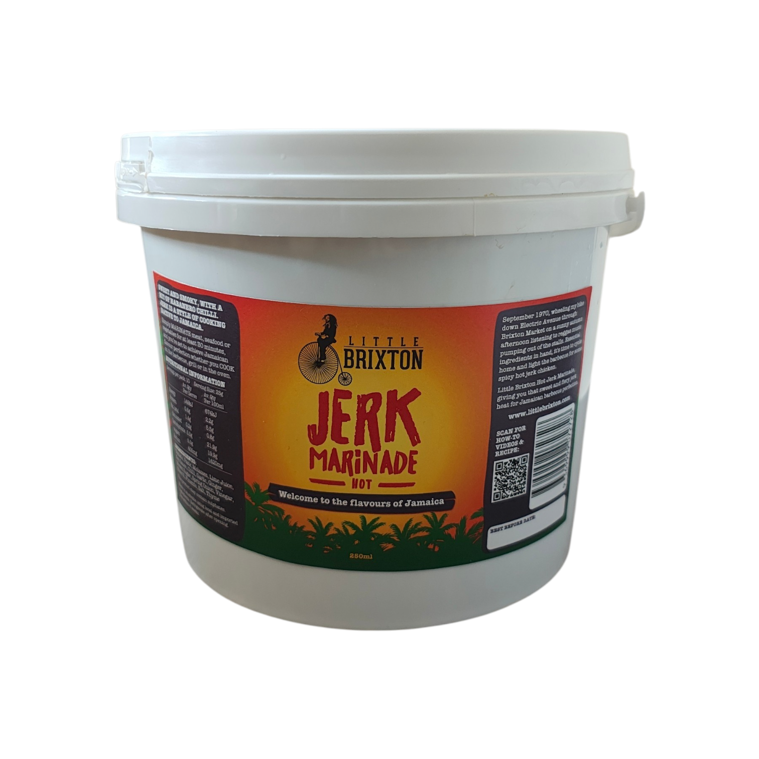 September 1970, a sunny autumn afternoon, strolling down Electric Avenue through Brixton Market. Reggae music pumping out of the stalls, ingredients in hand, it is time to get home and light the BBQ for some hot and spicy jerk chicken. Little Brixton Hot Jerk Marinade giving you that sweet and fiery jerk heat for any occasion.